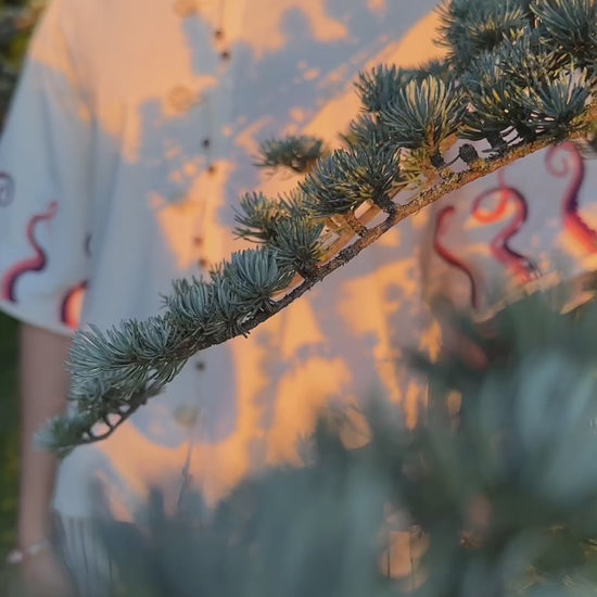 This natural cotton oversize shirt features intricate marine embroidery: a large octopus on the back and tentacles flowing along the sleeves. Inspired by the ocean, it’s a perfect gift for sailors, marine biologists, or lovers of sea life. With tassels, beads, and natural textures, it blends boho, ethnic, and eco-friendly styles.